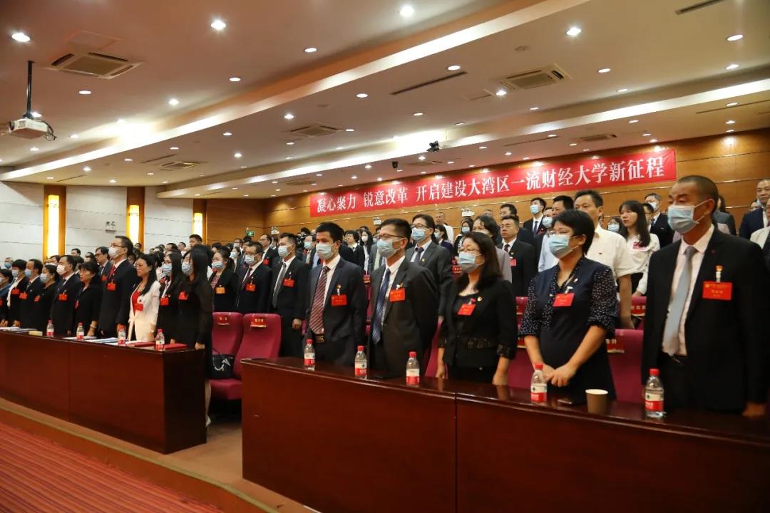 大会强调,建设大湾区一流财经大学,关键在党。学校党委要以习近平新时代中国特色社会主义思想为指导,增强“四个意识”、坚定“四个自信”、做到“两个维护”,全面贯彻落实党的教育方针,全面加强党对学校各项工作的领导,全面深化党的建设和思想政治工作,进一步提高把方向、管大局、作决策、抓班子、带队伍、保落实的能力和水平,坚定不移推动全面从严治党向纵深发展,使学校始终成为坚持党的全面领导的坚强阵地。