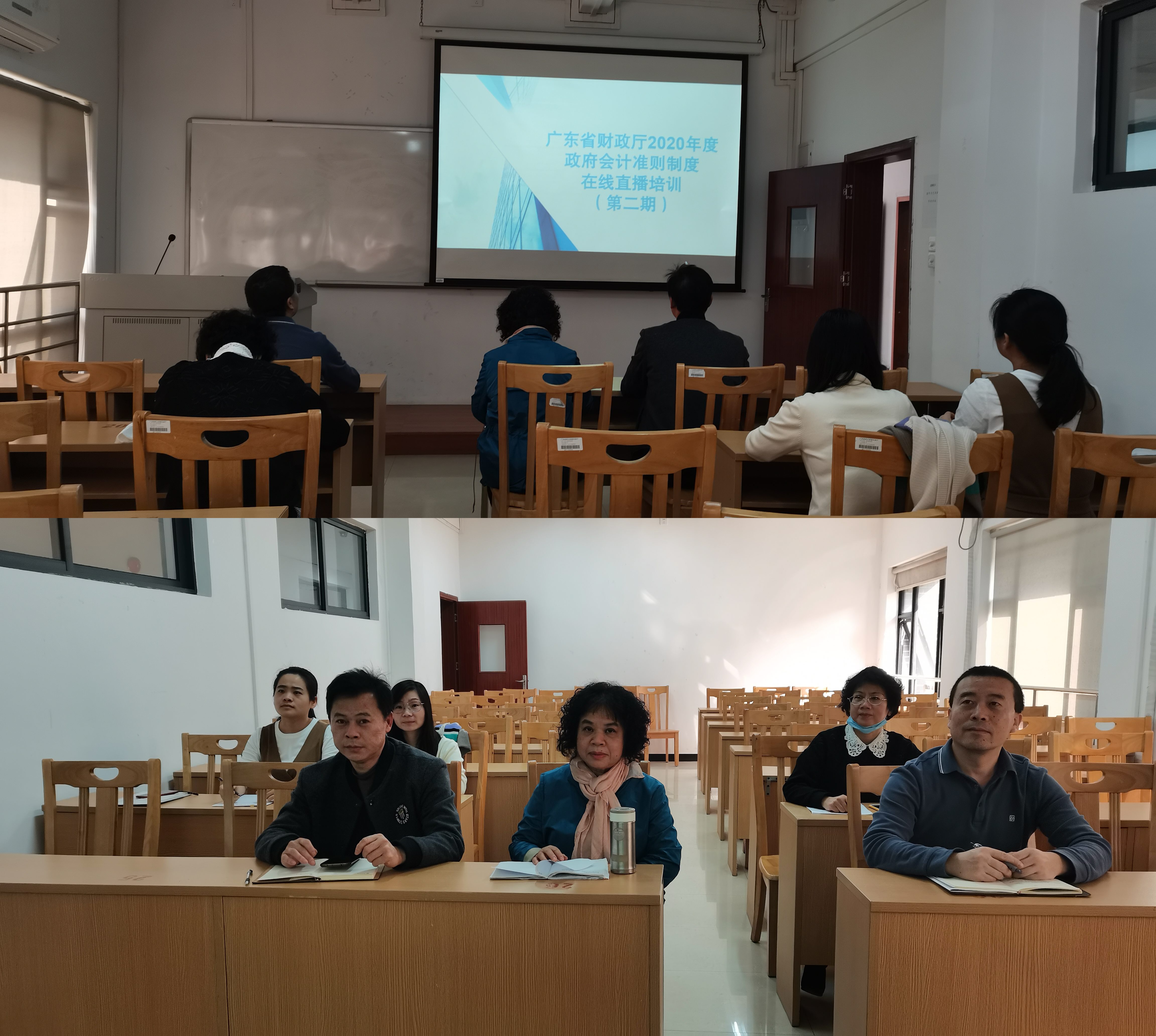 2020年12月28日,根据《广东省教育厅关于开展2020年度政府会计准则制度在线直播培训(第二期)的通知》,财务处组织了包括广州校区财务处和三水校区财务科的全体人员参与线上培训。
