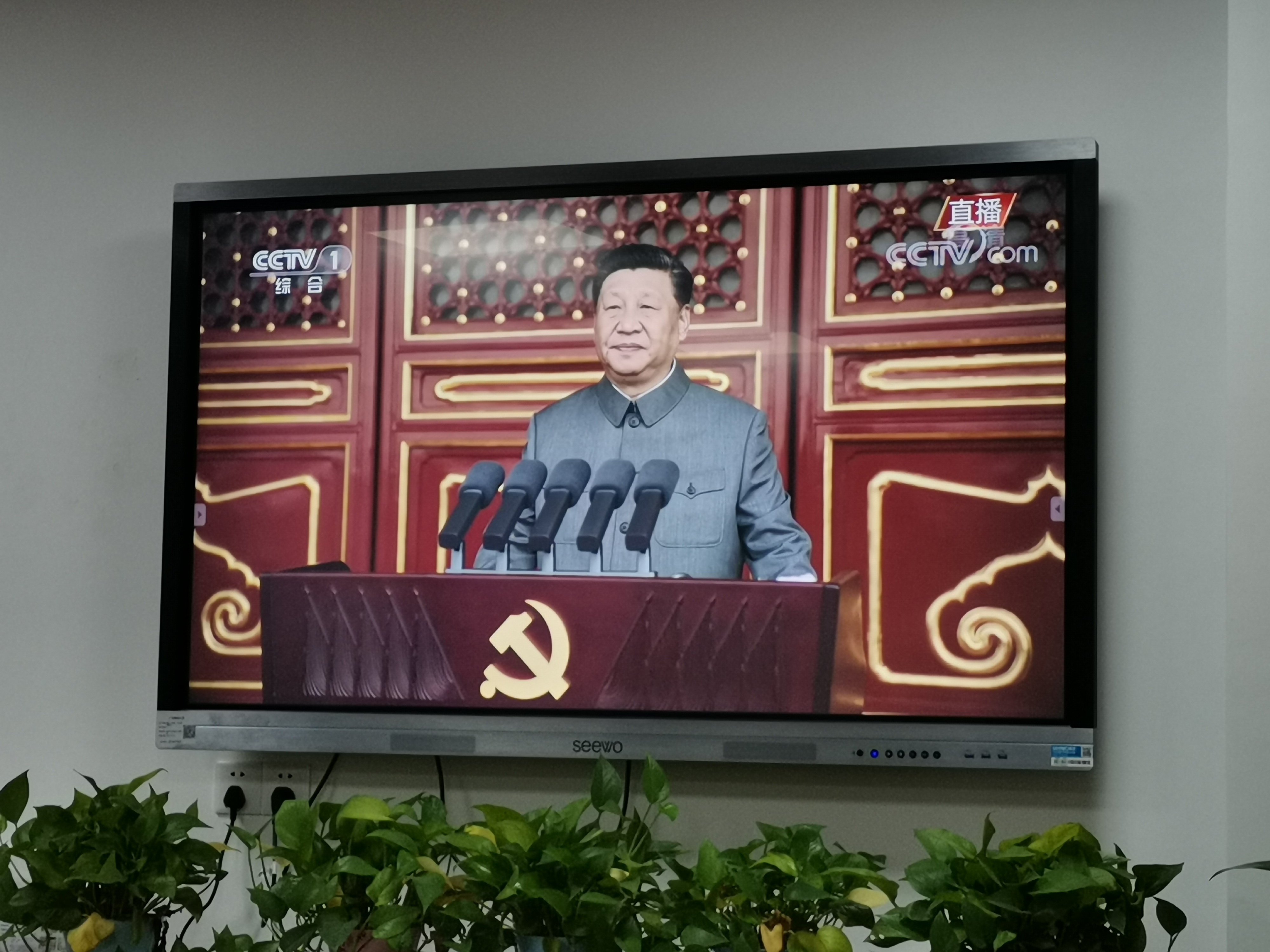 7月1日8点,中国共产党建党一百周年大会在北京天安门广场隆重举行。中共中央总书记习近平在会上发表重要讲话。财务与国有资产管理处广州与佛山校区全体教职工同步集中收看直播盛况,共同见证建党100周年来我国发展建设所取得的伟大成就。