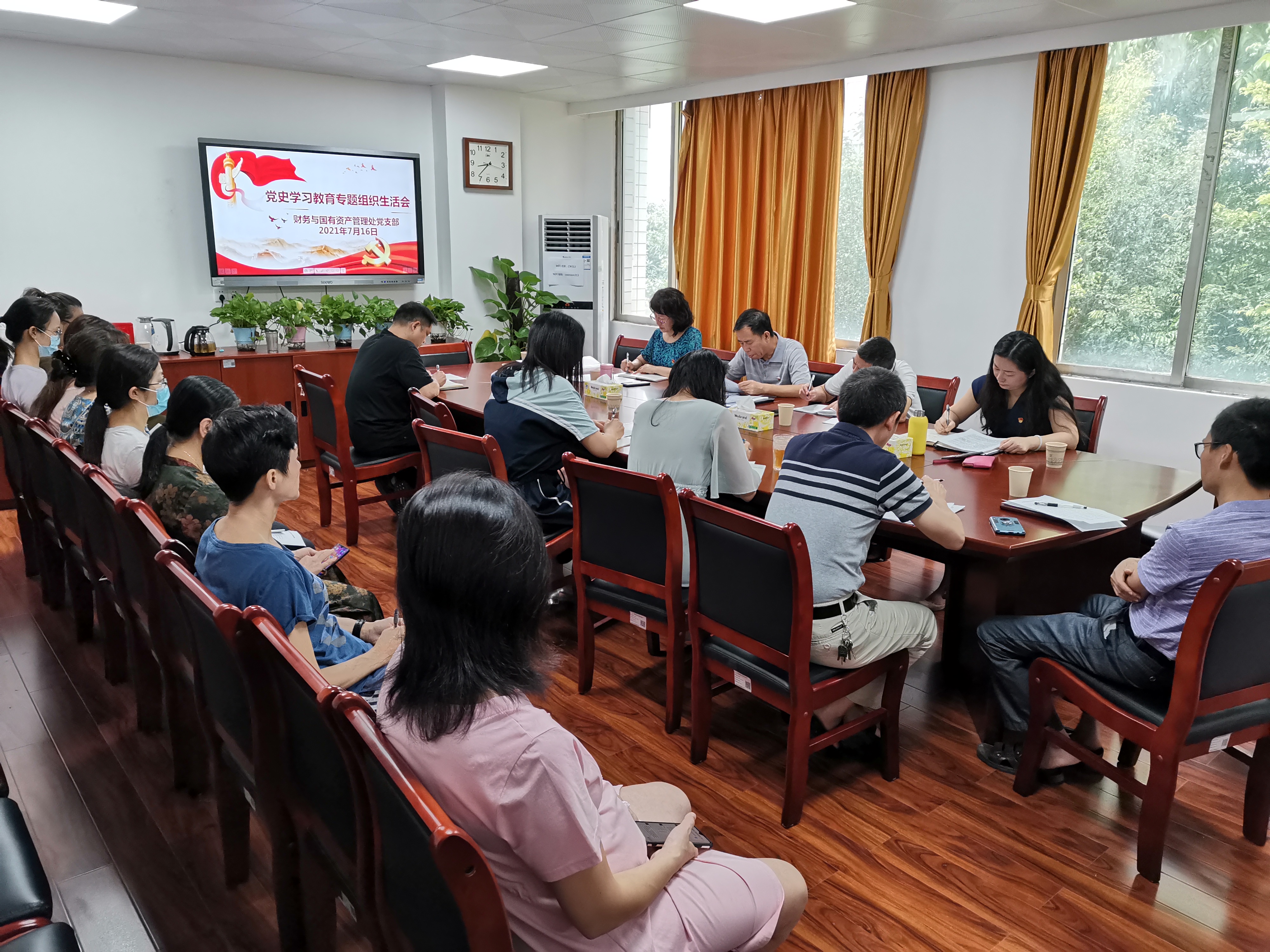7月16日上午财务与国有资产管理处党支部召开党史主题教育专题组织生活会,机关党委谢访春书记作巡回指导,会议由姚凤民书记主持。